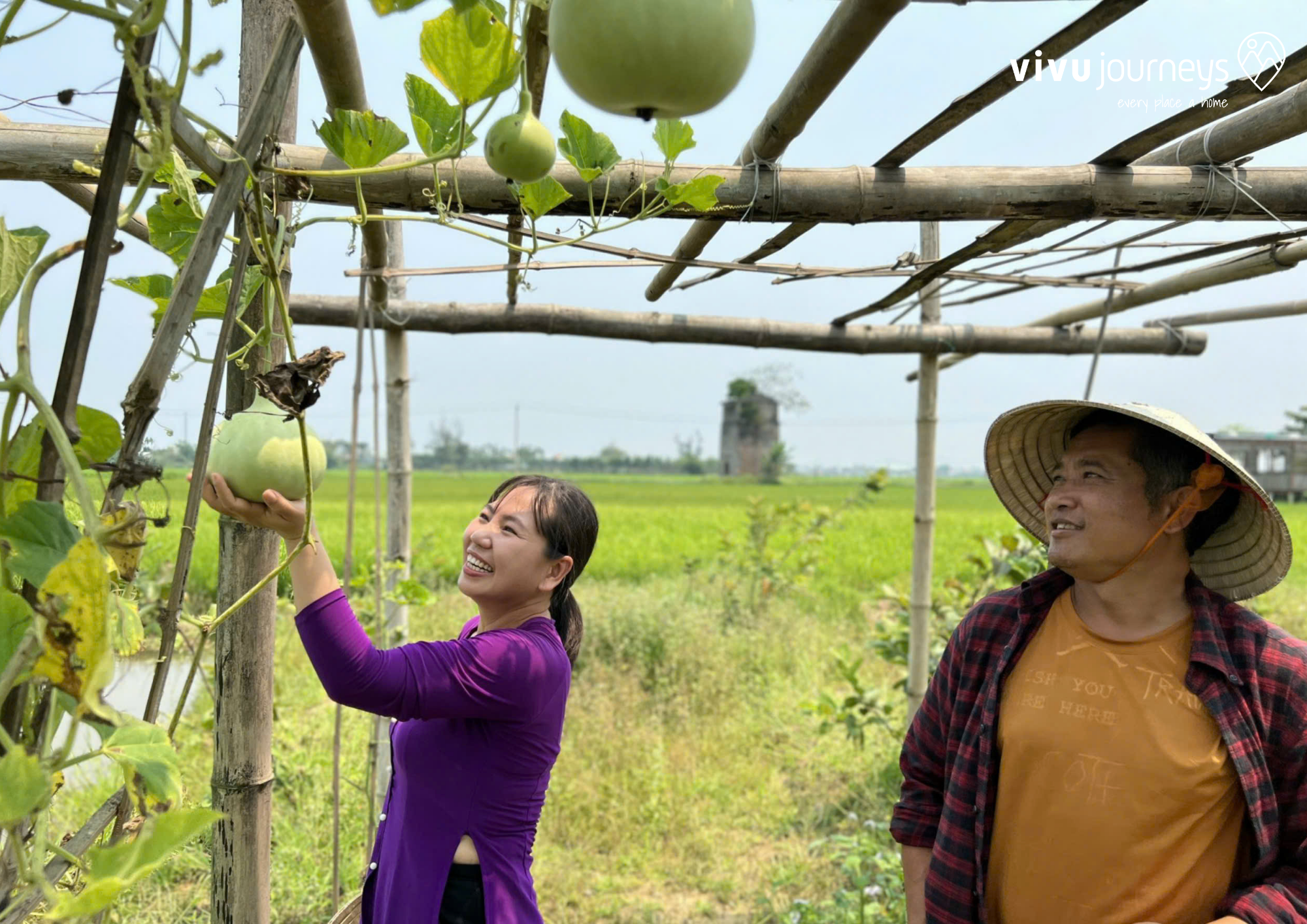 To reach her farm, Vivu guests can trace a path through Hoi An’s vibrant heritage. Along the way, the sights of carpentry and mother-of-pearl engraving reflect the craftsmanship of the region. These old-age practices, coupled with traditional noodle making and rice paper baking, highlight a dedication to preserving the culture of the region. And there’s no better way to soak up the heritage and picturesque landscapes than by pedal power! Upon arrival at her farm, after a refreshing welcome drink, Thi No leads customers on a journey through her own story and a hands-on experience on the farm itself.